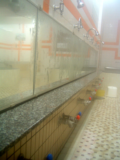 脱衣所から木の棚はなくなり、コインロッカーなどが新たに入りましたが、脱衣所はほぼ以前のままの姿で残っています。
