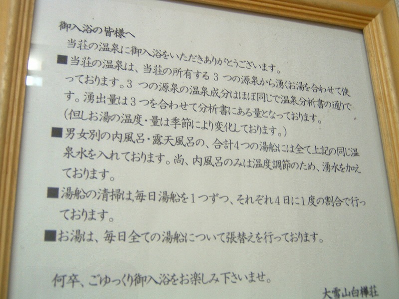 分析書によれば、こちらのお湯は「大雪山白樺荘源泉1,2,3号」。