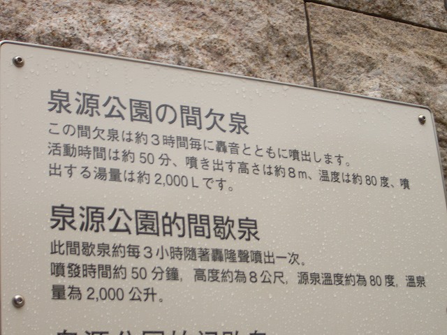 説明によればこの間歇泉は3時間ごとに噴出し、活動時間は約50分、噴き出す高さは約8メートル、温度は約80℃とのこと。