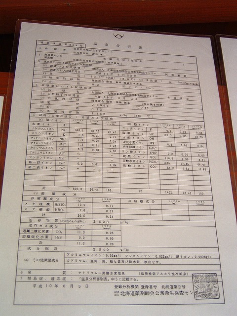 頭の上には、湯使いについての掲示と、分析書・分析書別表がきちんと並んでいました。