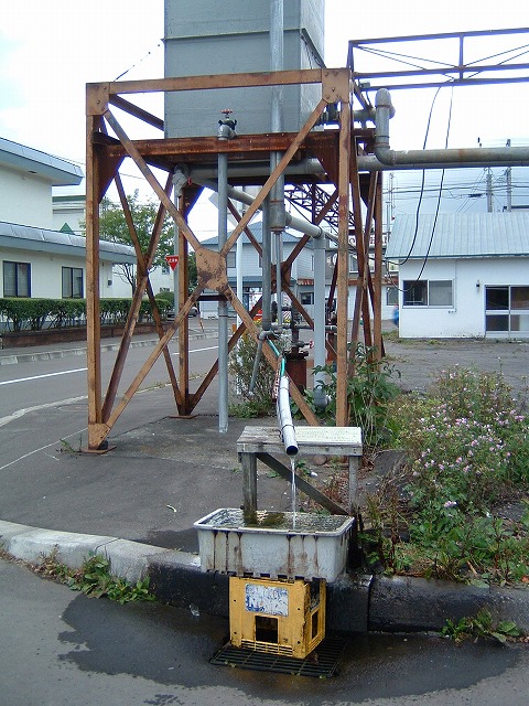 建物の横のパイプからは、約12℃の冷水がどばどば流れていました。