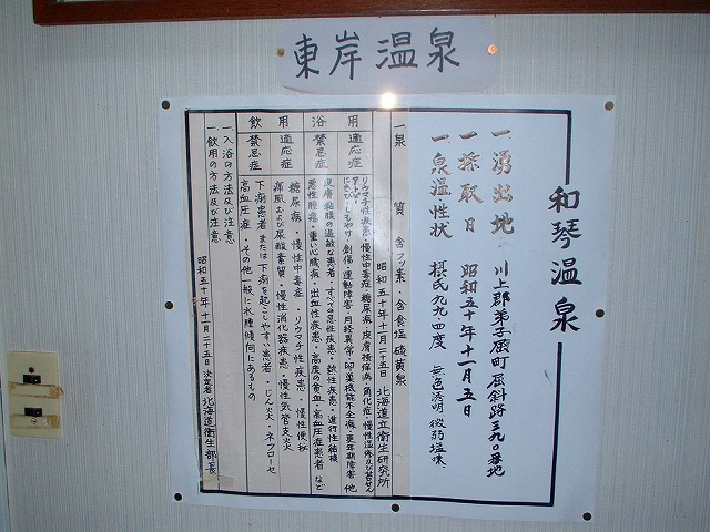 こちらの廊下には「東岸温泉」と「湖岸温泉」の二つの掲示があり、元々2つの源泉の混合だったようです。