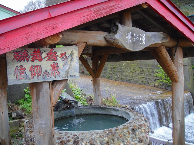 こちらがその「薬師湯」です。「硫黄香る信仰の泉」という看板は以前はなかったように記憶しています。