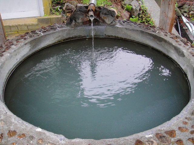 以前来た時はもっと透明感があって中に白い湯の花が漂っているのが見えましたが、今回は濁った湯色となっていました。