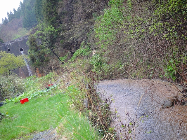 川床は茶色く色づいていて、その奥に見える巨大な砂防ダムからも茶色い流れが確認できました。