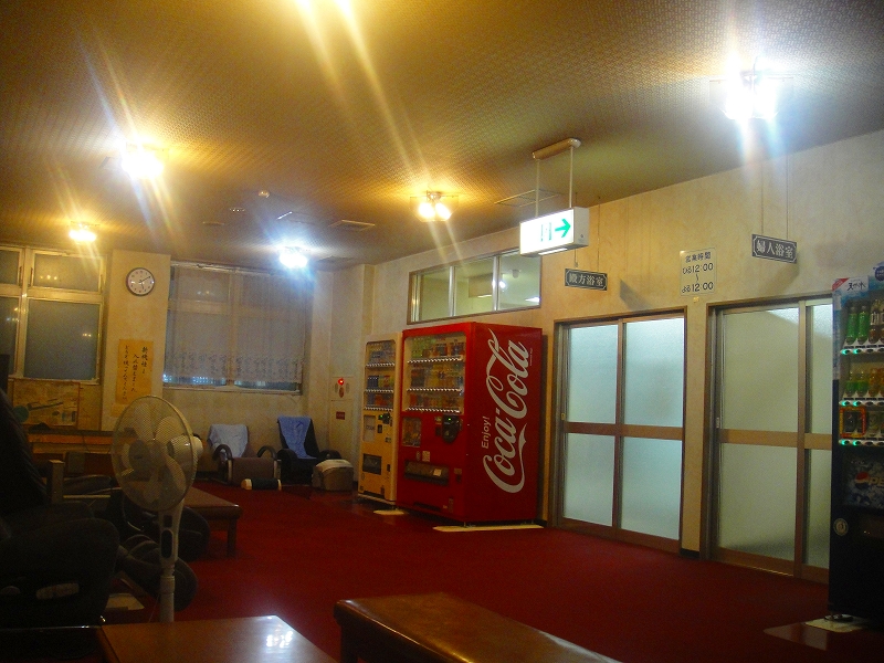 広い休憩スペース、脱衣場への入り口‥元湯の方はホテルの浴室といった雰囲気でしたが、こちらはまさに銭湯の雰囲気。