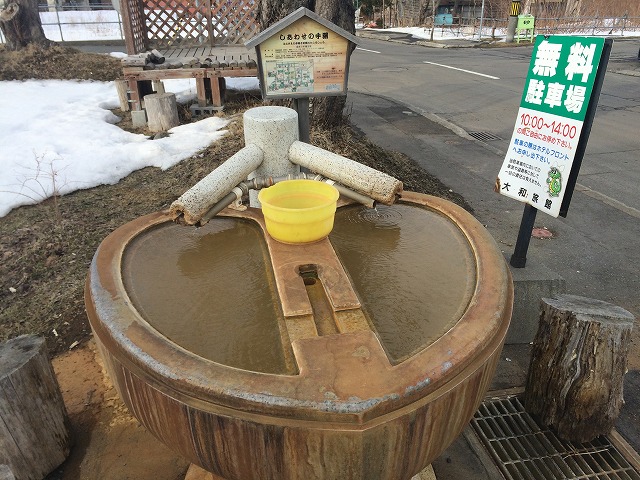 「しあわせの手湯」という名前が付いていて、恐らくカップルがハートのそれぞれの側に手を浸すよう作られたのでしょう。
