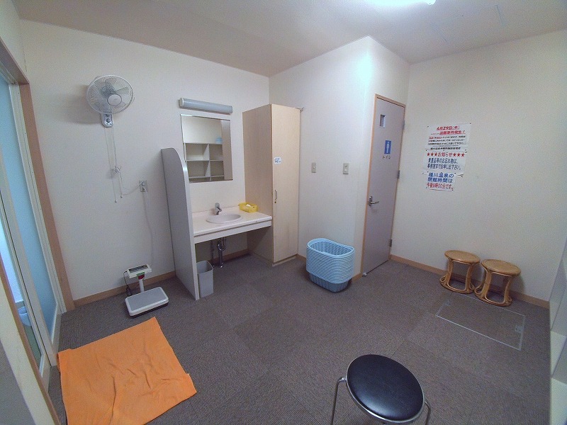 受付と浴室の間に大きな休憩所がありますが、お風呂用のイスがここで再利用?されています。あまり見ない光景なので面白いなぁと思って目に留まりました。