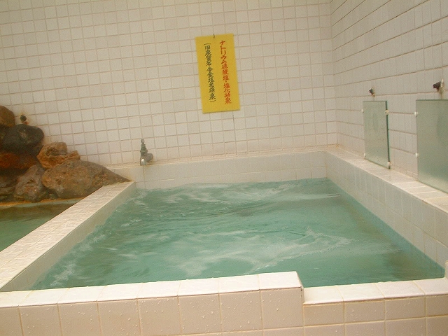 分析書は1つですが、主浴槽の方には「芒硝泉」、ジャグジーのほうには「含食塩芒硝泉」というパネルが貼ってありました。