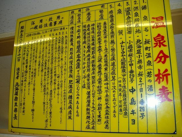 掲示されている昭和58年5月の分析書によれば、こちらのお湯は源泉名「桜町温泉(若の湯)」。