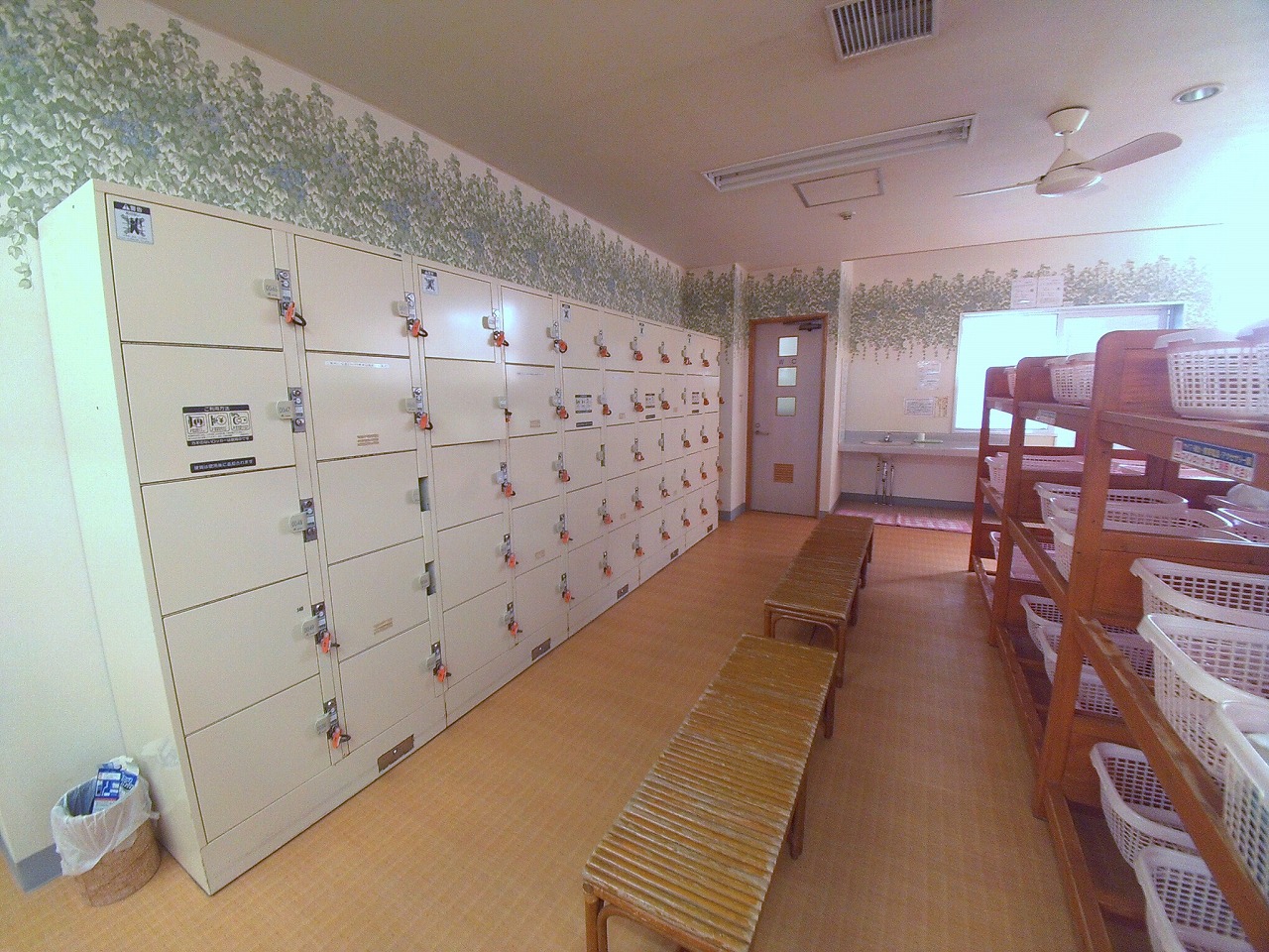 ホテルから廊下を進み「ゆりかご」内に入ると、売店や休憩スペース、脱衣場の入口がありました。