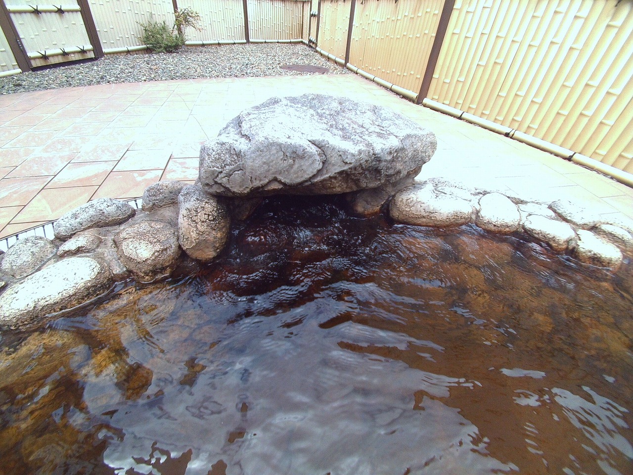循環していますが、露天のお湯は内湯よりも濃い色に見え、湯の花も多く舞っています。