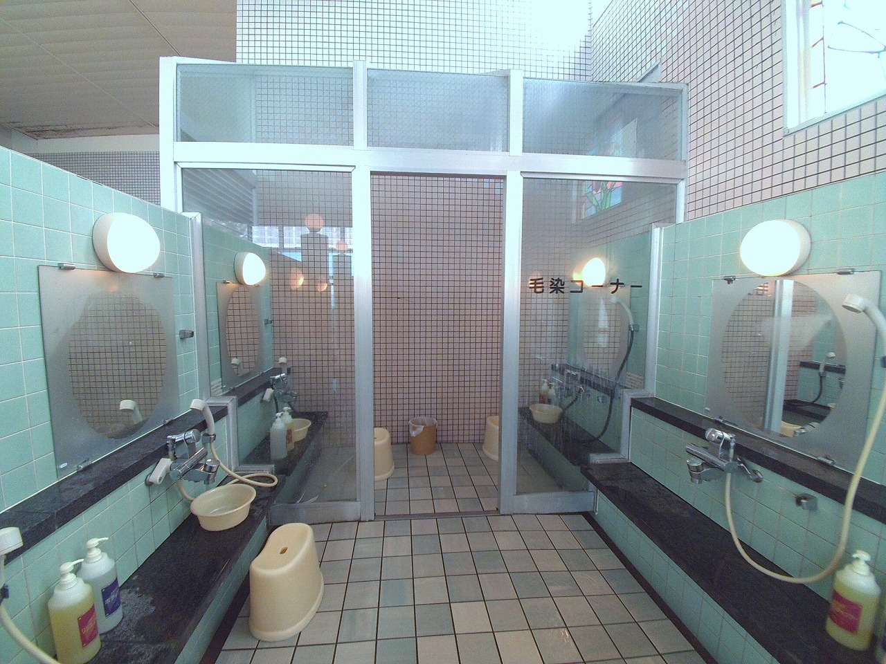 ちょっと驚いたのは、洗い場の奥に「毛染コーナー」があることです。ほとんどの施設で毛染めは禁止されていますし、している方も見たことがありませんが、ここでは堂々と毛染めが可能です。