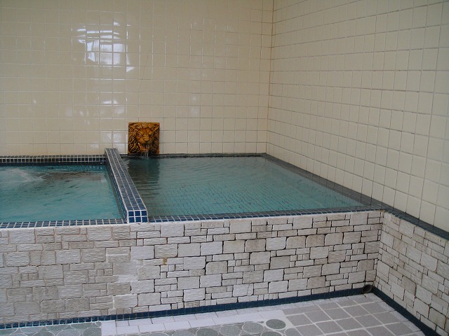 一番右側は水風呂で、凛々しい顔のライオンの口から勢い良く水が出ています。