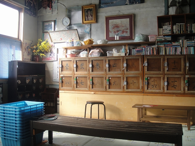 中に入った途端に時代が変わったような、味のある佇まい。大きく番号が書かれたこのロッカーの正面に座り、しばらく何もせず眺めてしまっていました。