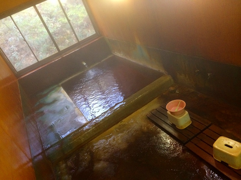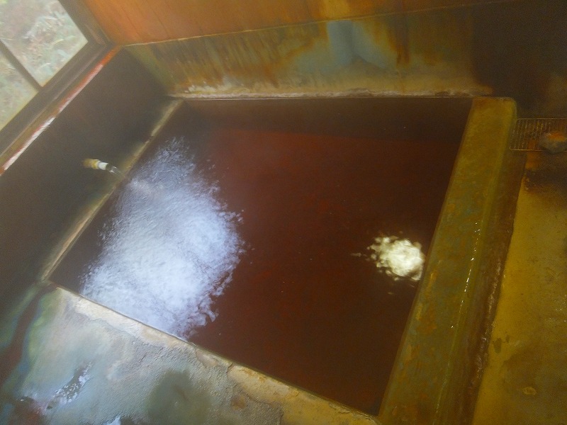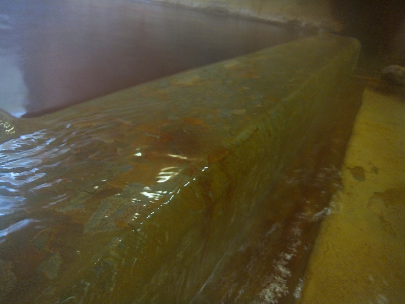 数年前に訪問した時、分析書を見ていたら女将さんが通りかかったので、「すごいお湯なんですねー」って声をかけたんですが、一言二言の会話の後、「うちのお湯にタオルをつけると色がついちゃうので、タオルお貸ししましょうか?」と。