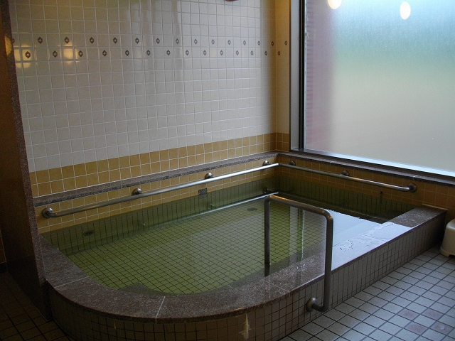 お湯は(タイルのせいもあると思いますが)緑色透明に見えます。