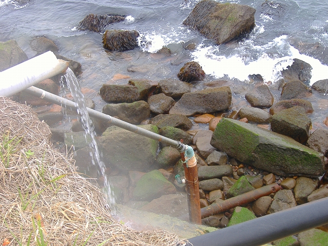 以前とは多少違う姿で繋がれた温泉パイプ。