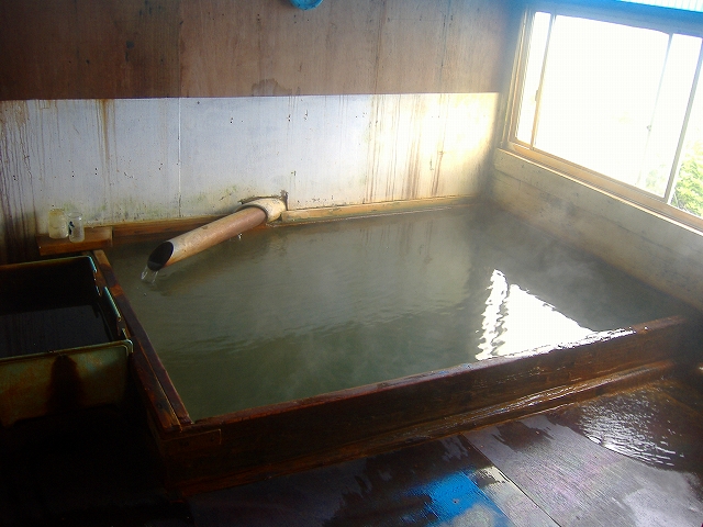 以前と変わらない木の湯船に、笹濁りのお湯が注がれています。