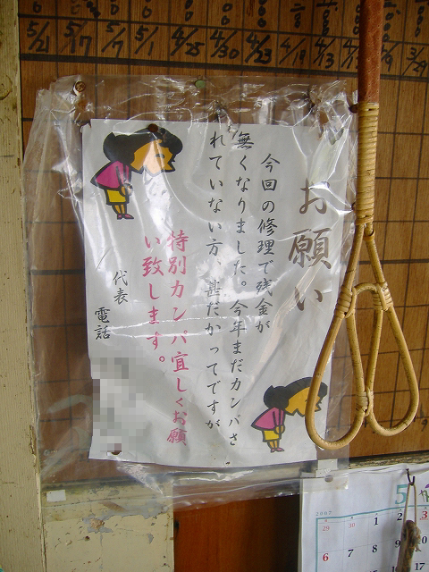 壁には今年の修理に関しての幾つかの張り紙がありました。