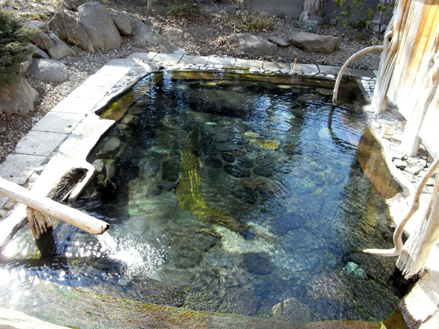 そして、この大きい湯船のこぼれ湯がパイプを通り、2人入ればいっぱいくらいの小さな湯船に注がれています。