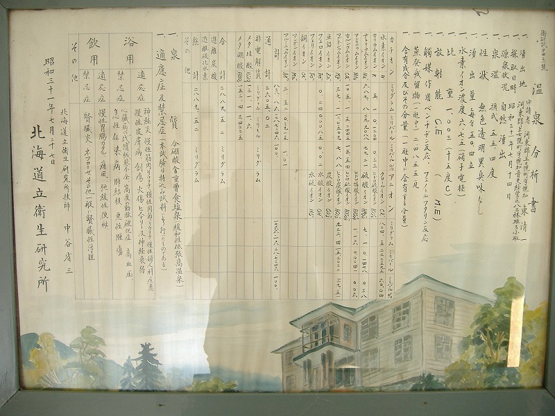 どの源泉のものか分かりませんが、この宿の手書きの絵を背景に書かれた分析書。