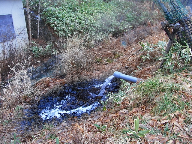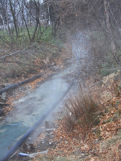 いい色の温泉の川ですね〜。
