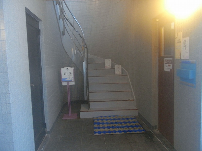 さて、サウナの前を通り、奥の階段へと進みます。この階段を上った先が屋上の露天風呂です。