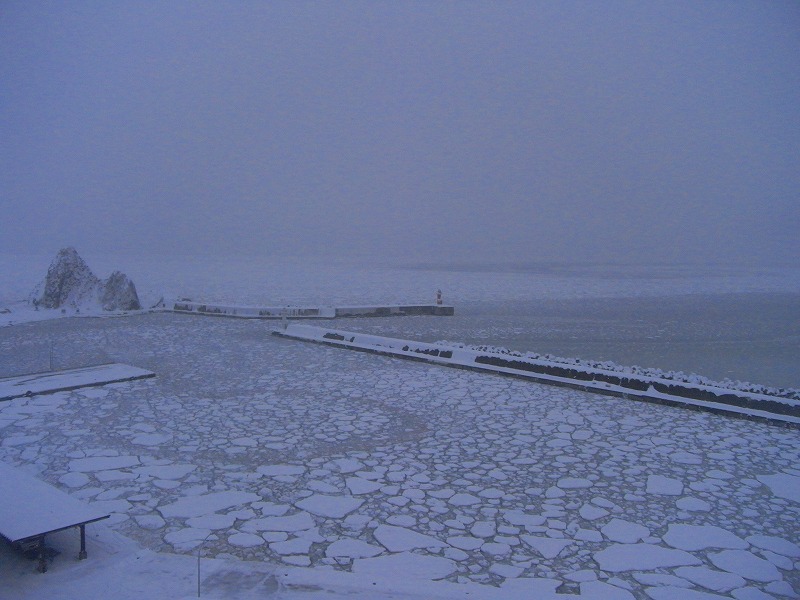 この露天から漁港からプユニ岬まで見えるので、結局内湯には最初少し入っただけで、ほぼこの露天風呂に浸かったり立ち上がったりしてしばらく流氷を眺めて過ごしました。