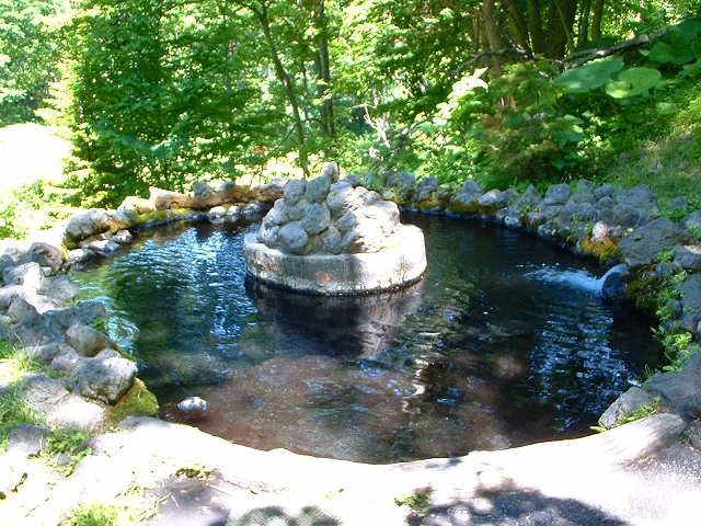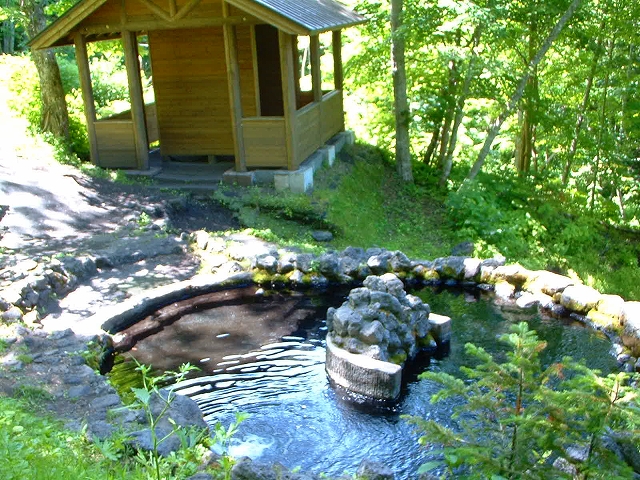 以前は写真左の源泉で入浴できたようですが、この源泉が世界にここ一ヶ所しかないという生きたマンガン鉱泉だということが分かり、源泉から少し下った場所に露天風呂が設置されました。