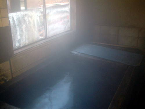 湯船の奥側が木の板で仕切られ、その部分だけ蓋がしてありますが、ちょうどこの下にかまどがあり、直接薪を燃やして源泉を暖めていたのでした。