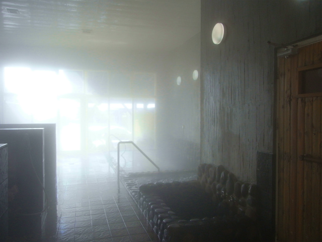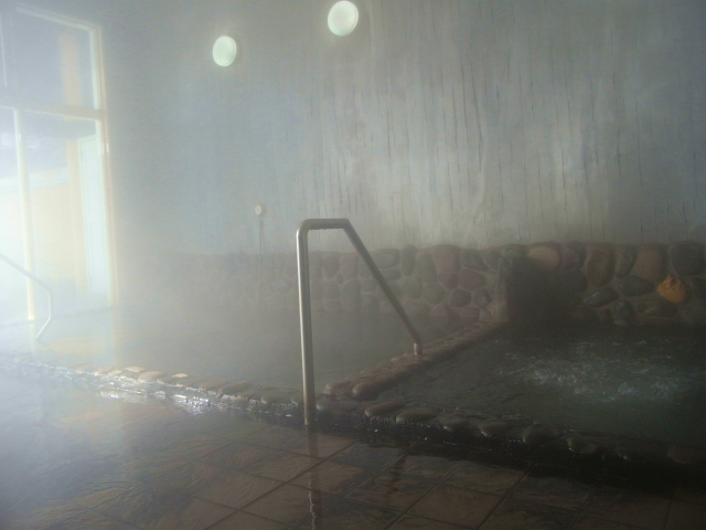 冬の温泉らしく、浴室に湯気がたっぷり。
