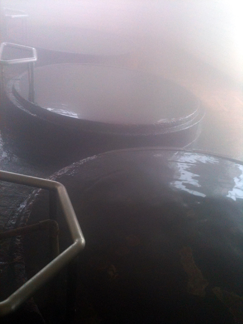 大きなヒューム管の湯船が3つ並んだ内湯は、以前と全く変わらず。冬らしく湯気だらけですが、金気臭漂う浴室の空気に思わず嬉しくなりました。