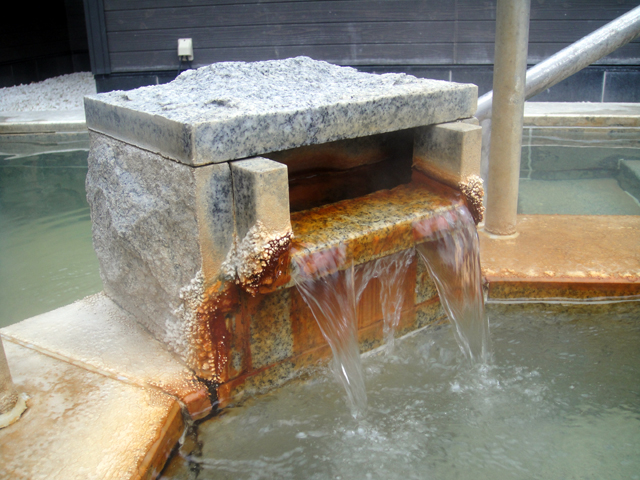 肝心の湯使いですが、内湯のあつ湯&ぬる湯&瓢箪型露天は加水なし・循環なし・塩素殺菌ありのかけ流し。弱い薬品臭がしますが、それほど気になりませんでした。