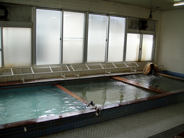 湯船の大きさは3つともほぼ同じで、5-6人が入れそうな大きさ。ただし、深さは熱い湯船ほど深い造りになっています。