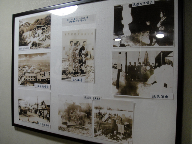 廊下には長万部温泉のはじめの頃の写真のパネルがあります。温泉が出た直後にこうやって簡易の湯船で町民に解放された温泉は、非常に新鮮な状態で入れたでしょうね・・羨ましく思いました。