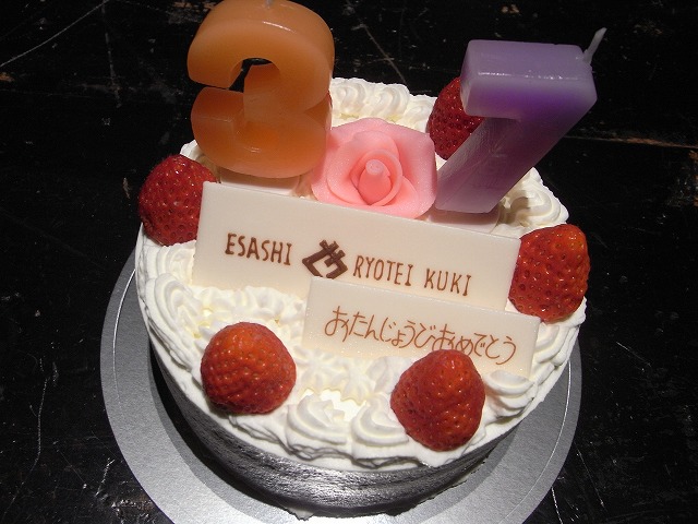 夕食の後にお部屋に運ばれてきた誕生日ケーキ。