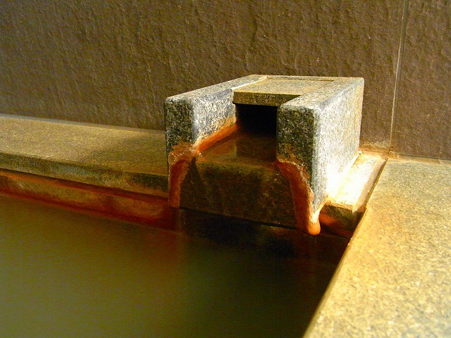 成分が着いた綺麗な湯口を見ながら、チェックアウトの12時まで、ツルキシ感のあるいいお湯を何度も楽しみました。
