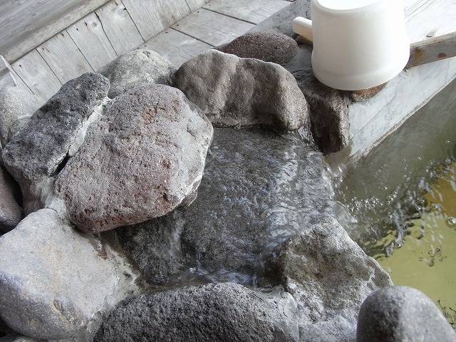 こちらが湯口です。透明度のある薄いお茶のような色のお湯が静かに注がれています。