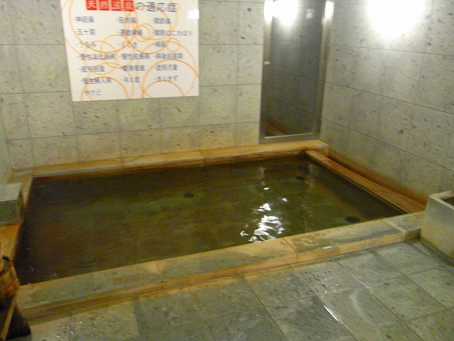 加温・循環ろ過・殺菌ありで、お湯からは強めの塩素臭がしています。浸かるとキシキシした感じがするお湯です。