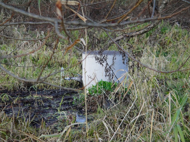 この源泉は養殖場で使用している事になっていますが、すぐ近くにはそれらしきものが見当たりませんでした。別の場所に運ぶか引湯して使っているのかもしれません。