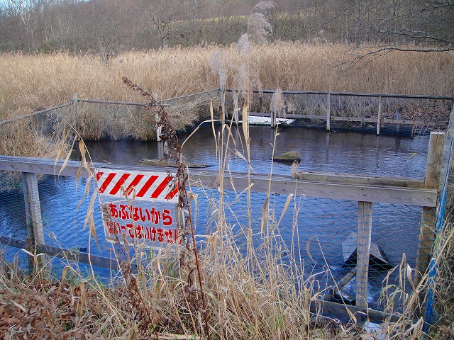 ここは周囲にボーリングした温泉はないので自然湧出の温泉なのかもしれません。湯口のパイプの向きからすると道路の反対側の湿原内から来ているようにも見えますが、このお湯がどこから来ているのか謎のままです。