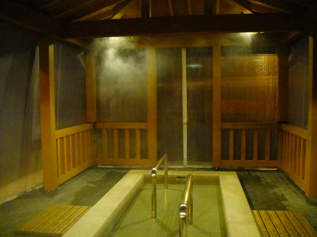 夜は湯けむりも見えて雰囲気アップ。