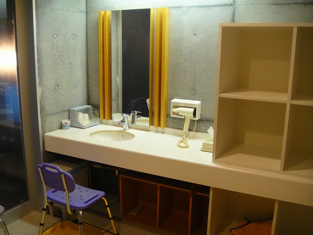 棚の右側にはバリアフリーのトイレと洗面台がありました。