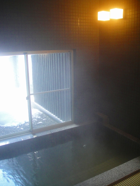 男女の大浴場の間にあるこの浴室からは、左右の壁の向こうに雪とつららが見えていました。
