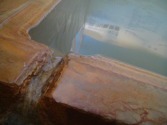 お湯の香りはほとんど変わりませんが、同じ分析書を掲げるニュー温泉閣ホテルのお湯よりも油浮きは少なく、日帰り入浴できる施設の中では一番サッパリした、軽いお湯でした。