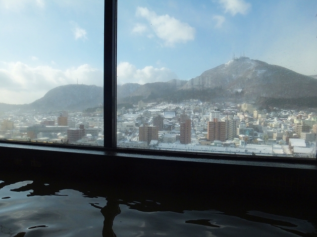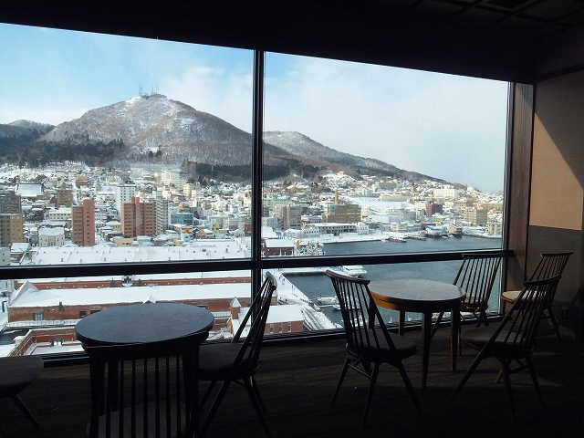 夜には気づきませんでしたが、朝は窓から函館の街と函館山がたいへん綺麗に見えていました。