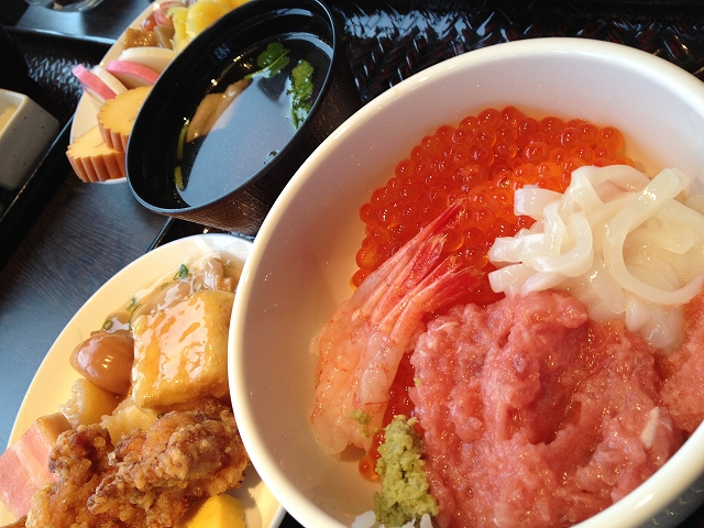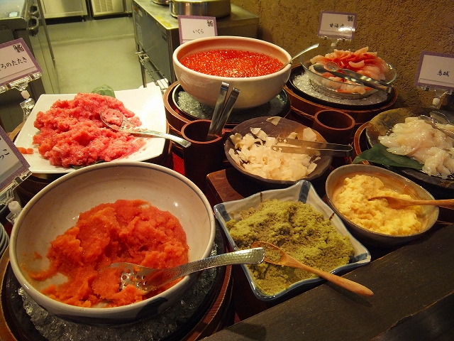 いくら・マグロのたたき・イカ・甘海老・タラコで作る勝手丼がメインになりますが、本当に品数豊富。
