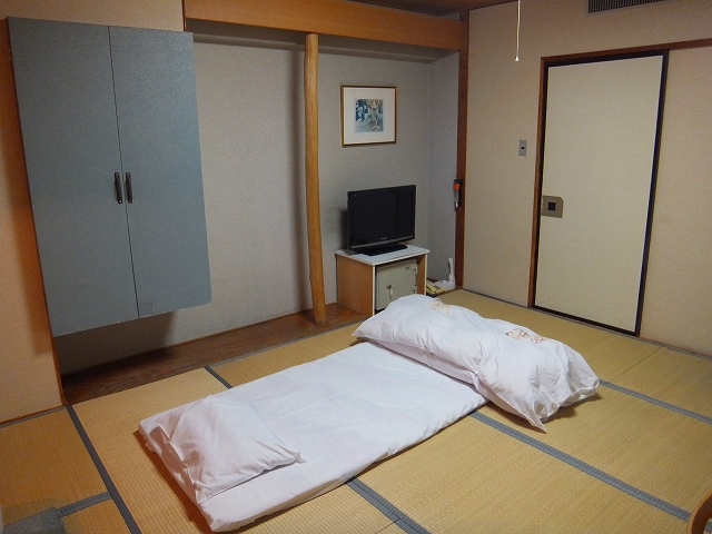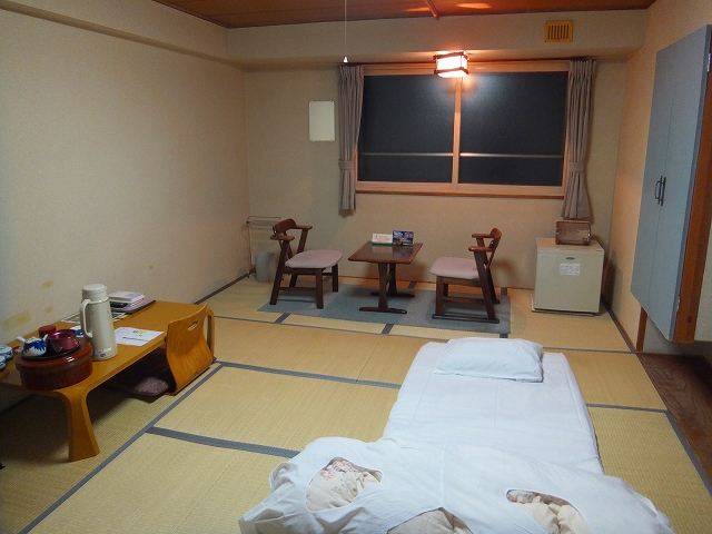 実は手違いがあったらしく1名宿泊なのに布団が2組敷いてありましたが、お部屋に入って3分もたたないうちに係りの方が来て布団を1組さげてゆきました。迅速な対応でした。