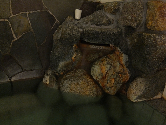 主浴槽は湯口から源泉+浴槽内循環。